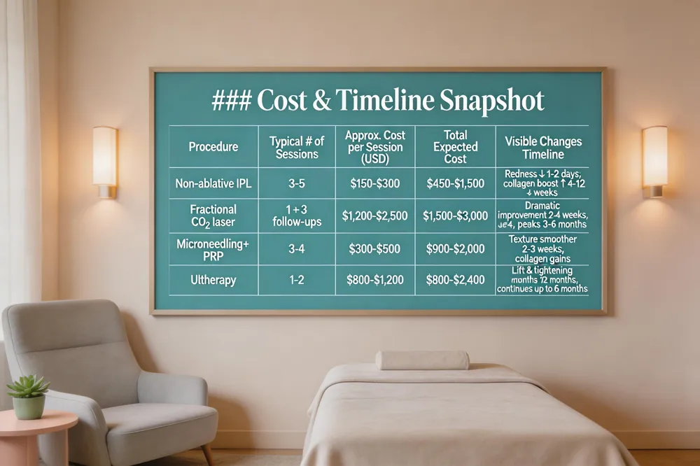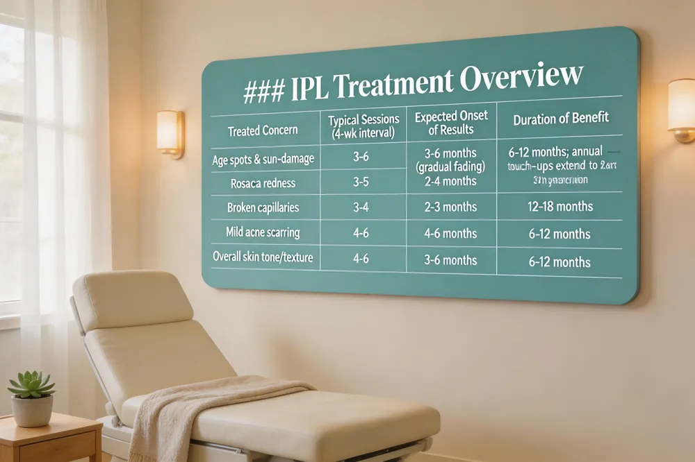 Key takeaways: IPL and non‑ablative laser therapies improve pigment, redness, texture and fine lines by delivering broadband or fractional light that stimulates collagen without removing the epidermis. Results appear after three to six sessions spaced four weeks apart, with mild redness that fades within a few days.