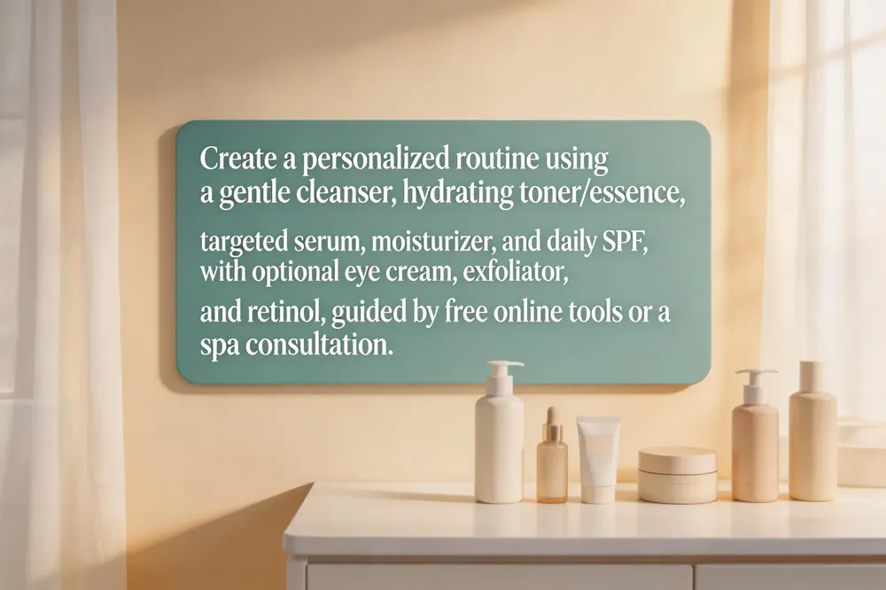 Build my skincare routine with my products: Start with a cleanser suited to your skin type, follow with a hydrating toner or essence, apply a targeted serum, layer a moisturizer, and finish mornings with SPF. Add eye cream and a gentle exfoliator or retinol a few evenings per week, rotating with barrier‑restoring creams on off‑days.