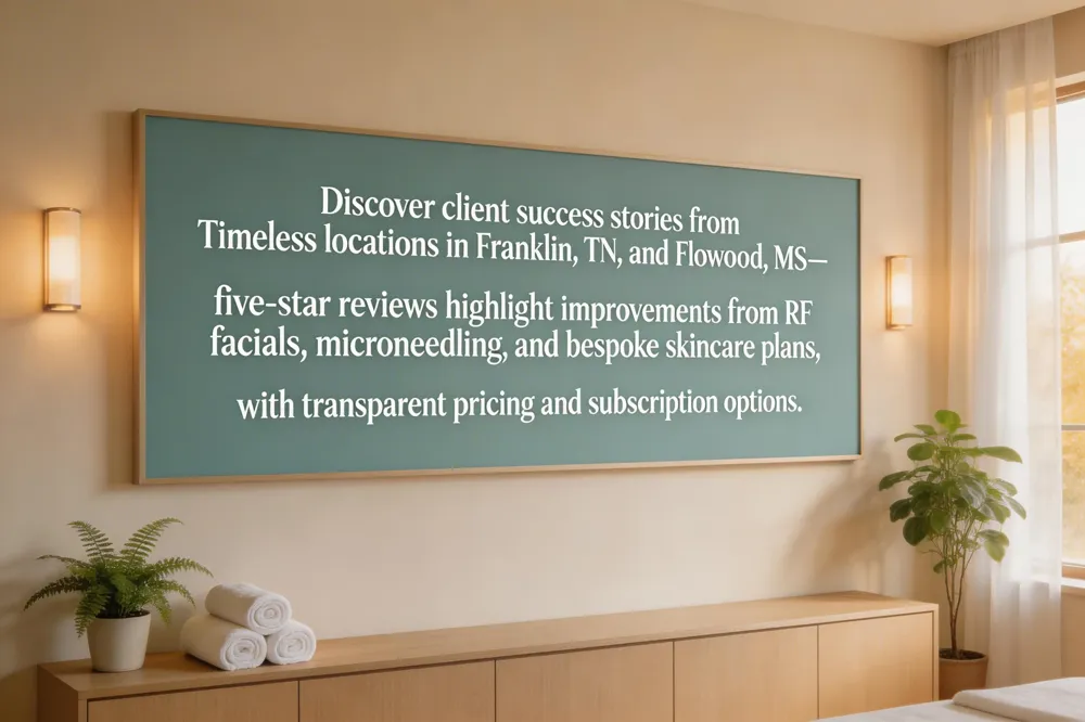 Client Reviews & Success Stories – Across Google, Healthgrades, and local sites, Timeless Med Spa consistently earns five‑star ratings. Reviewers highlight noticeable improvements in skin texture, tightness, and overall radiance after RF facials, microneedling, and custom skincare regimens, citing the knowledgeable staff and luxurious ambiance as key factors.