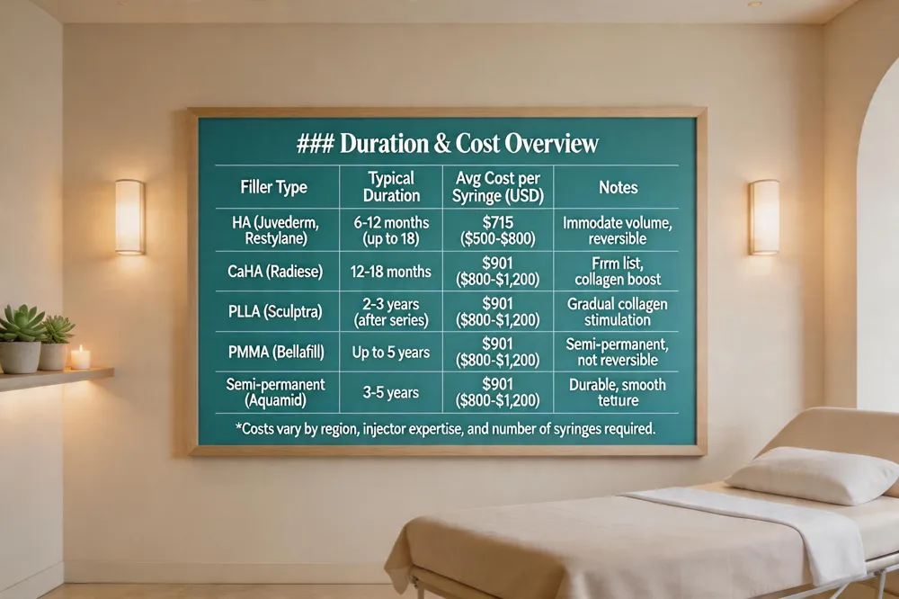 | Filler Type | Typical Duration | Avg Cost per Syringe (USD) | Notes |