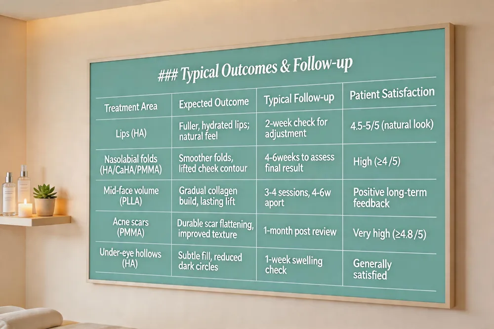 | Lips (HA) | Fuller, hydrated lips; natural feel | 2‑week check for adjustment | 4.5‑5 /5 (many report natural look) |