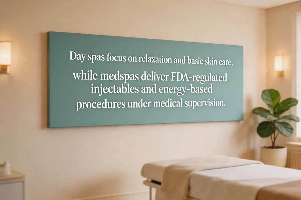 Traditional day spas are wellness‑focused retreats that offer relaxation‑centric services such as massages, body wraps, basic facials, and hydrotherapy, performed by licensed aestheticians or massage therapists. The emphasis is on stress relief and skin‑care maintenance rather than medical correction, and there is no requirement for a supervising physician. In contrast, a medical spa (medspa) delivers clinical‑grade aesthetic procedures—including Botox, dermal fillers, laser resurfacing, chemical peels, and microneedling—under the direct oversight of a qualified medical professional (dermatologist, nurse practitioner, or physician assistant). All injectables and energy‑based treatments must be administered by personnel with specific medical training, and a board‑certified medical director must review protocols, patient histories, and adverse‑event reporting. Because medspas operate within the U.S. FDA regulatory framework, they are subject to stricter safety standards, mandatory use of FDA‑approved products, and adherence to infection‑control guidelines that are not mandated for conventional day spas. This layered oversight ensures that medspa interventions are both effective and safe, while day spas remain focused on pampering and holistic wellness.