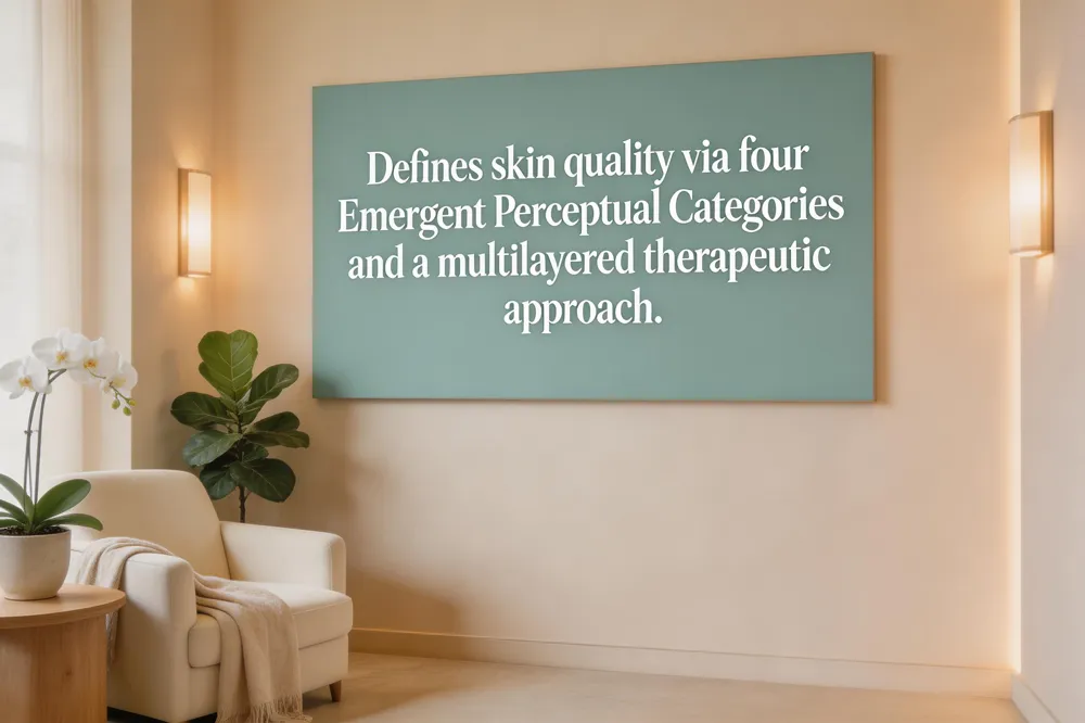 The expert panel agreed that good skin quality is healthy, youthful‑looking, and appears younger than one’s chronological age. Across ethnicities it is defined by four Emergent Perceptual Categories (EPCs): tone evenness, surface evenness, firmness, and glow. Each EPC reflects multiple tissue layers, so a multilayered therapeutic approach—combining topicals, energy‑based devices, and injectables—optimizes personalized outcomes.