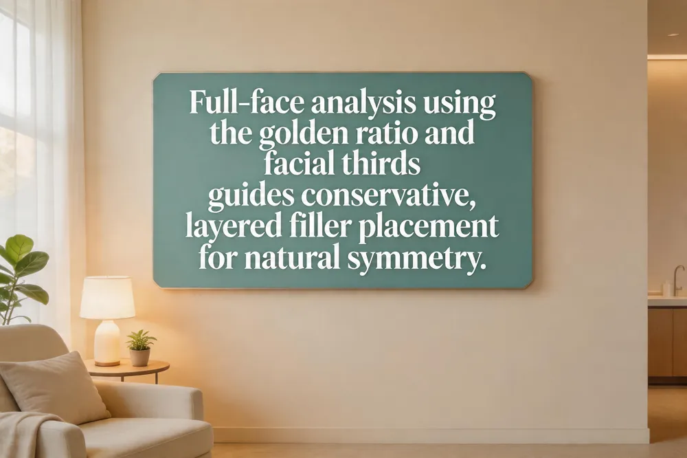 Facial balancing begins with a full‑face analysis that uses the golden ratio (≈1.618) and the facial thirds rule to gauge proportion. A thorough consultation maps each region—cheeks, chin, jawline, temples, lips, and nose—so the injector can plan conservative, layered filler placement that respects bone structure and skin thickness.