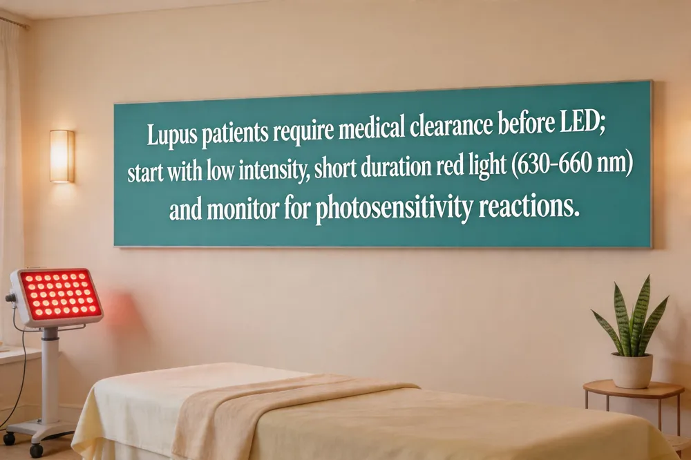 People with lupus often experience photosensitivity, meaning even low‑level light can provoke skin flares. Because LED therapy uses non‑UV red and near‑infrared wavelengths, it is generally gentle, but the heightened sensitivity in lupus patients requires medical clearance before treatment. A rheumatologist or dermatologist should assess the patient’s photosensitivity level, review any photosensitizing medications, and decide if LED is appropriate. If cleared, the protocol should be adjusted: start with the lowest intensity and shortest duration, choose wavelengths that minimize risk (typically red 630‑660 nm), and monitor the skin closely for redness or rash. In short, lupus patients may use LED light therapy safely, but only under professional supervision and a customized, low‑dose protocol.