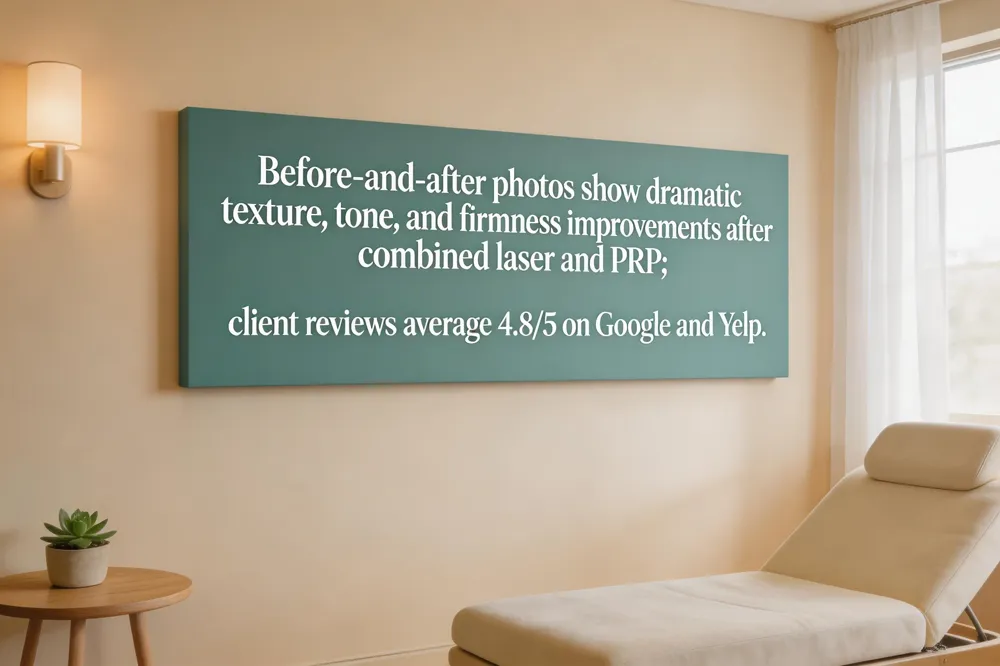Our before‑and‑after gallery showcases dramatic transformations after just three to four combined laser and PRP sessions, with noticeable improvements in skin texture, tone, and firmness. Each image highlights a reduction in fine lines, a more even complexion, and increased elasticity, confirming the efficacy of personalized skin‑rejuvenation protocols across a wide range of skin types and concerns.