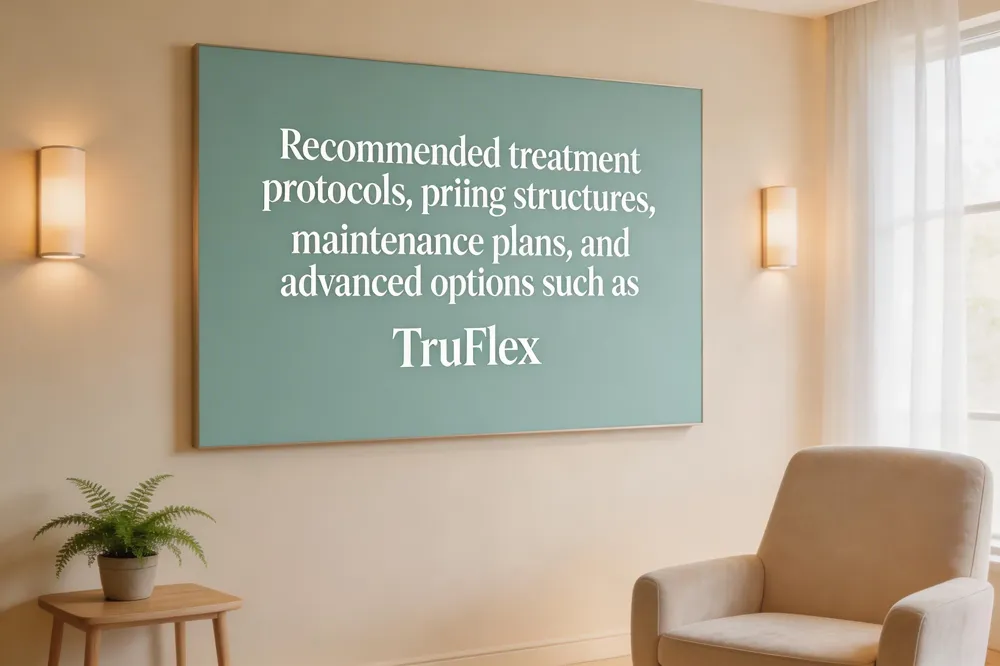 A typical TruSculpt protocol recommends 2‑3 sessions spaced 6‑8 weeks apart, with a maintenance touch‑up every 12‑18 months to preserve fat reduction and skin tightening. For TruBody—a combined TruSculpt + TruFlex package—the regular price is $2,900; a current 10 % promotion reduces it to $2,610 and includes one TruSculpt session plus six TruFlex sessions completed within eight weeks. After the package, any additional TruSculpt or TruFlex work can be booked at a further 10 % discount for the next 12 months.