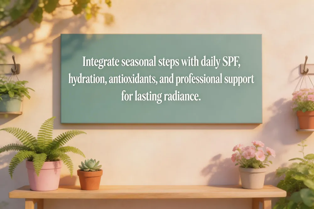 A truly radiant complexion comes from weaving seasonal skincare steps into a holistic daily plan and reinforcing it with professional support. In spring, swap to a lightweight moisturizer and add a gentle chemical peel to boost cell turnover; summer calls for oil‑free formulas, double‑cleansing, and re‑applying SPF every two hours; fall is the time to enrich the barrier with ceramide‑rich creams and antioxidant Vitamin C serums; winter demands a richer, occlusive moisturizer, hyaluronic‑acid serum, and indoor humidification. Pair these texture changes with internal health habits—drink plenty of water, eat antioxidant‑rich fruits and vegetables, get 7–9 hours of sleep, and practice stress‑relief techniques. Regular visits to a board‑certified dermatologist or a med spa (like Timeless Med Spa) ensure personalized adjustments and non‑invasive treatments such as microneedling or laser resurfacing that amplify at results.