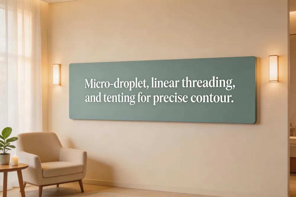 At Timeless Med Spa we prioritize natural‑looking lip enhancement. Micro‑droplet placement of 0.01‑0.05 mL HA filler along the vermilion border creates contour without bulk. Linear threading—needle or cannula inserted parallel to the lip surface and withdrawn while injecting—gives an even lift. Cannula use reduces bruising and vascular risk by gliding beneath the skin.