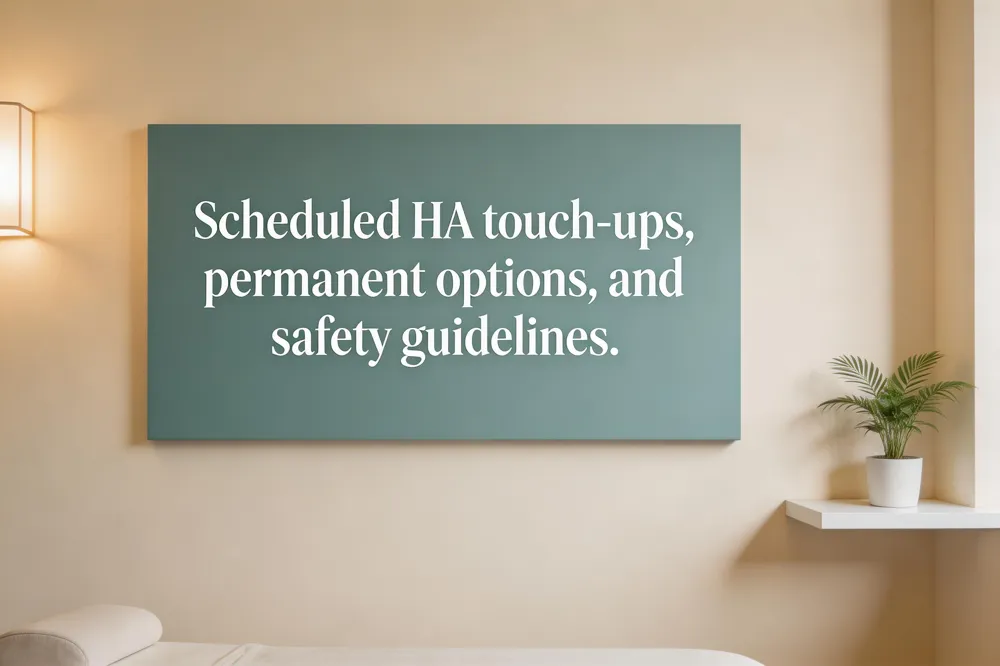 Duration of HA filler results and metabolism – Hyaluronic‑acid fillers typically last 6–12 months, with longevity affected by individual metabolism, product type and lifestyle. Scheduled touch‑ups and maintenance plans – Most clinicians recommend a touch‑up every 6–12 months; a staged approach (2–4 weeks between sessions) allows fine‑tuning and preserves natural harmony.