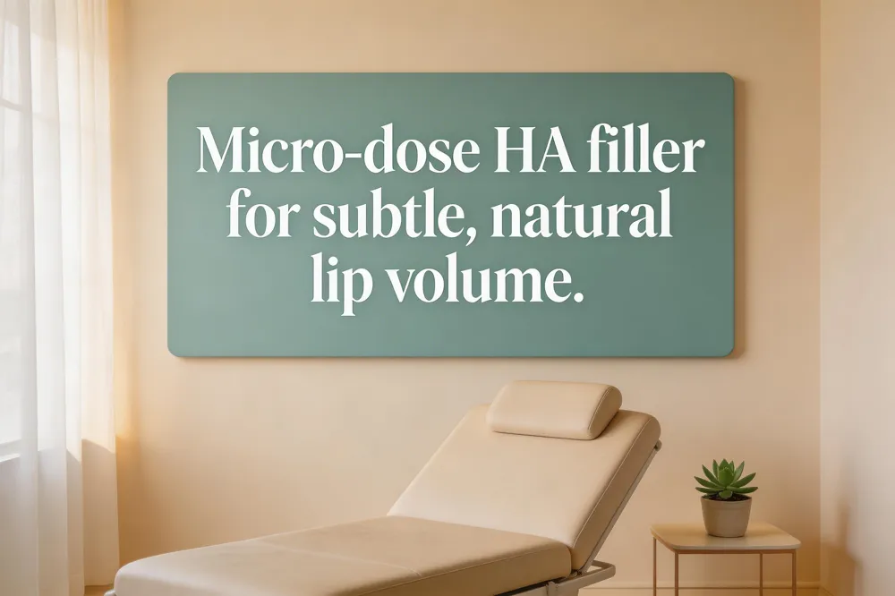 Natural lip filler for thin lips HA fillers provide gentle, hydrated volume without a “duck‑bill.” Combine with after‑care—balm, SPF, LED—to maintain softness and natural shape.