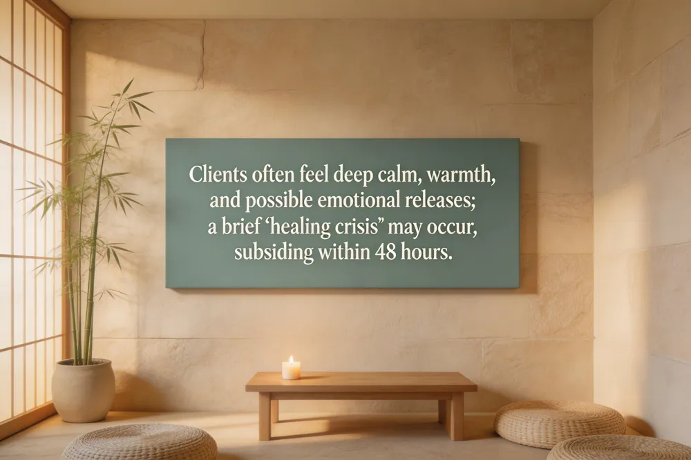 Right after a Reiki session you’ll often feel a deep relaxation, a gentle warmth or tingling, and a sense of calm that can linger into the next day. Many clients notice clearer thoughts, improved digestion and a lightness in the body, while sleep becomes more restorative. Emotional releases are common; tears or sudden mood shifts signal that trapped energy, especially around the heart chakra, is being cleared. This is part of a "healing crisis"—a temporary intensification of symptoms such as fatigue, mild aches, headaches, flu‑like sensations, or increased urination that usually subsides within 24‑48 hours. To manage these side‑effects, stay well‑hydrated, eat light, nourishing foods, avoid alcohol and limit caffeine intake, and allow extra rest. Gentle movement, journaling, and grounding practices can also help. If any reaction persists beyond a few days or feels severe, consult a healthcare professional.