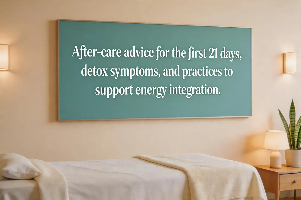 Reiki detox symptoms – Common signs include emotional swings, headaches, flu‑like aches, joint discomfort, deeper sleep or temporary restlessness, and mild digestive changes. Hydration, light nourishing meals, and gentle movement help soothe these reactions.