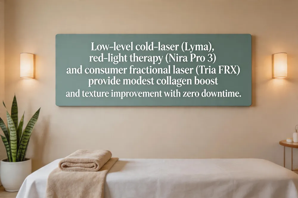 When choosing a home device for facial rejuvenation, the Lyma Laser Device tops the list for its low‑level cold‑laser that safely stimulates collagen across all skin tones with zero downtime. For fine‑line reduction, the Nira Pro 3 Laser offers targeted red‑light therapy in 15‑30‑minute sessions, while the Tria FRX Fractional Laser brings clinic‑like fractional technology to the consumer market, delivering noticeable pigment and texture improvements.