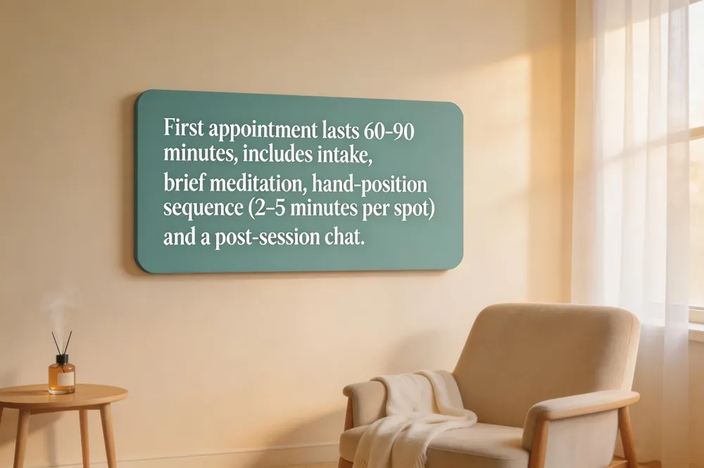 A first Reiki appointment typically runs 60–90 minutes, giving enough time for a brief intake, the energy work, and a post‑session chat. Arriving 10–15 minutes early lets you complete paperwork, discuss your goals, and set a clear intention with the practitioner. Once you lie fully clothed on a comfortable massage table (often covered with a light blanket), the therapist may begin with a short meditation or pendulum scan to sense the flow of ki through your chakras. The treatment then follows a gentle hand‑position sequence—starting at the crown of the head and moving down the body—holding each spot for 2–5 minutes. The room is set for relaxation: dim lighting, soft music, and a calm scent create a soothing atmosphere. Common sensations include warmth, tingling, or a deep meditative calm, and many clients drift into a peaceful sleep. After the session you are gently awakened, offered water, and encouraged to rest briefly before resuming daily activities. This structured yet flexible format supports both physical and emotional balance, complementing any aesthetic or skin‑care goals you may have.