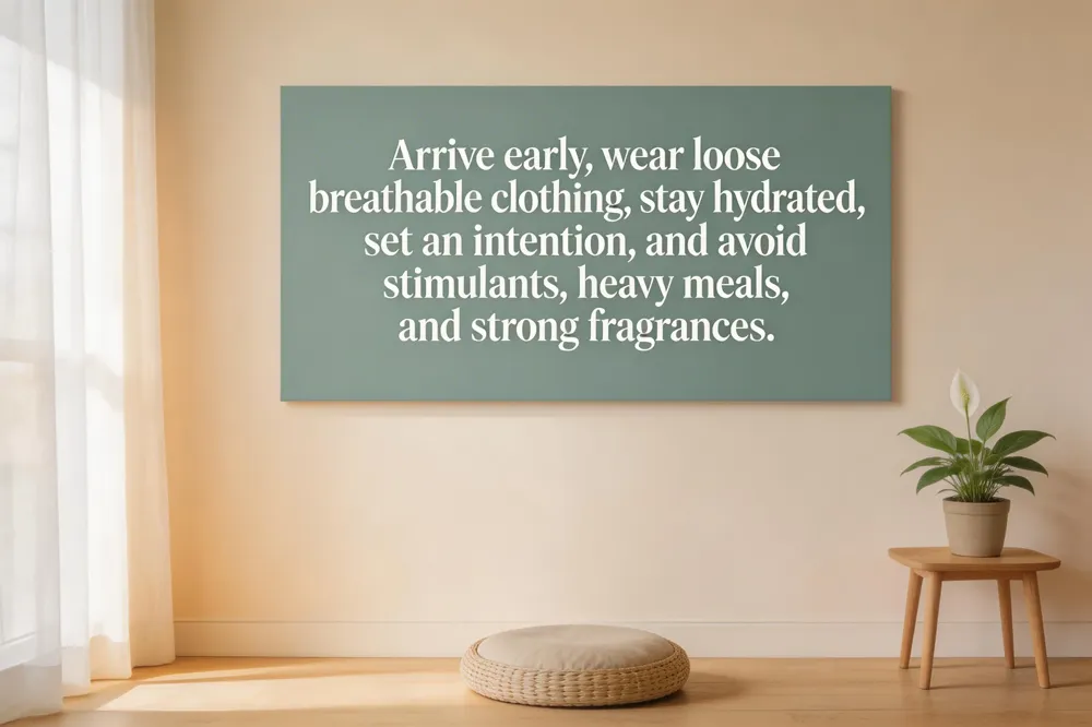 Mind‑set and intention: Take a few deep breaths, clear your mind, and set a personal intention. Approach the session with openness and let go of specific expectations.